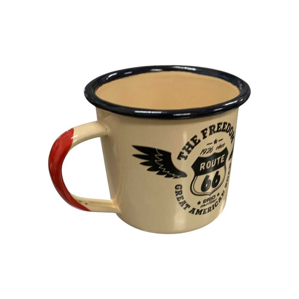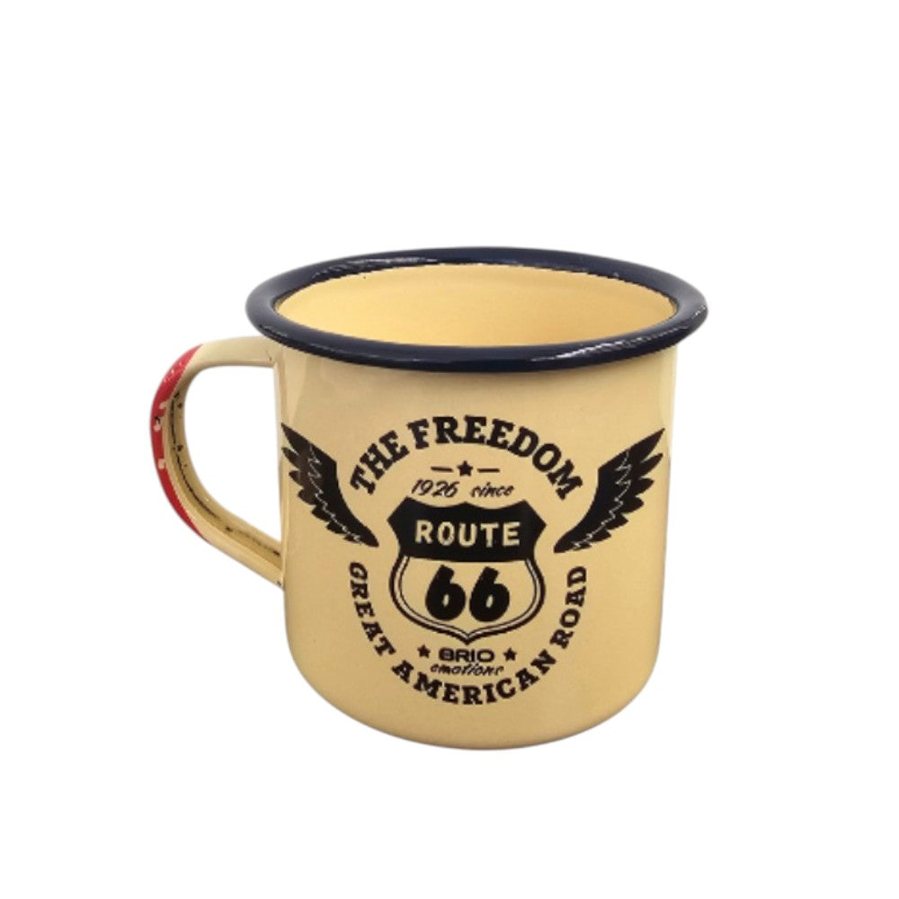 Cana cu o capacitate de 350 ml, fabricata din metal emailat.