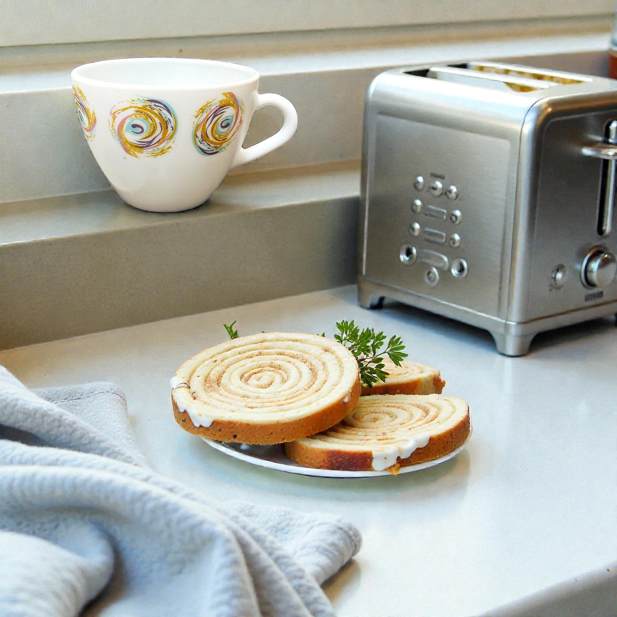 Ceasca din opal cu capacitatea de 190 ml model spirale este perfecta pentru savurarea cafelei, ceaiului sau altor bauturi calde. Fabricata din opal ceasca impresioneaza prin designul sau modern cu model spirale colorate in galben, mov, ros si albastru, creand vortexuri colorate care adauga un plus de stil servirii bauturilor. Aceasta are o capacitate potrivita pentru o portie generoasa de bautura preferata (190ml). In plus, ceasca model spirale este foarte usor de manipulat intrucat dispune de o toarta confortabila. Poate fi curatata atat manual sub jetul de apa cat si in masina de spalat vase.