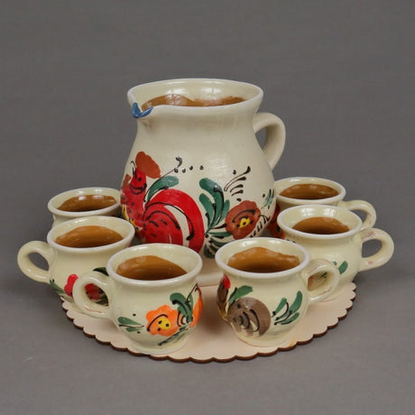 84,00 leiPret per bucata /IndisponibilSet Ulcior 500 ml cu 6 cescute 50 ml, lut pictate, pe platou lemn