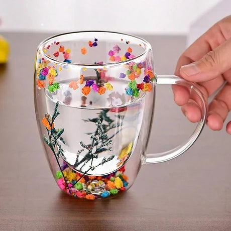 De la 21,60 leiPret per bucata /IndisponibilCana cu Pereti Dubli din sticla termorezistenta , Flori Multicolore , 350 ml