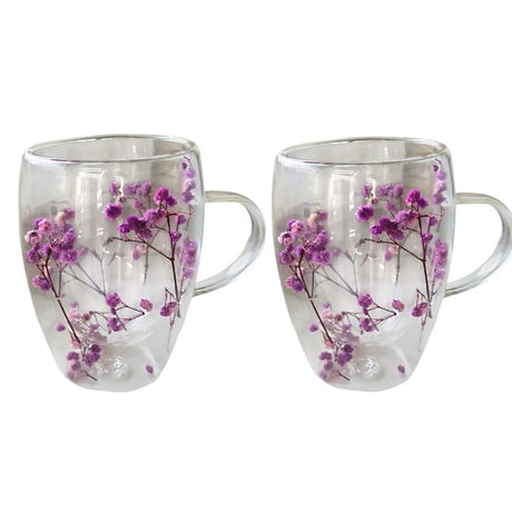 25,99 leiPret per bucata /IndisponibilSet 2 Cani cu Pereti Dubli din sticla termorezistenta , Flori Multicolore 350 ml