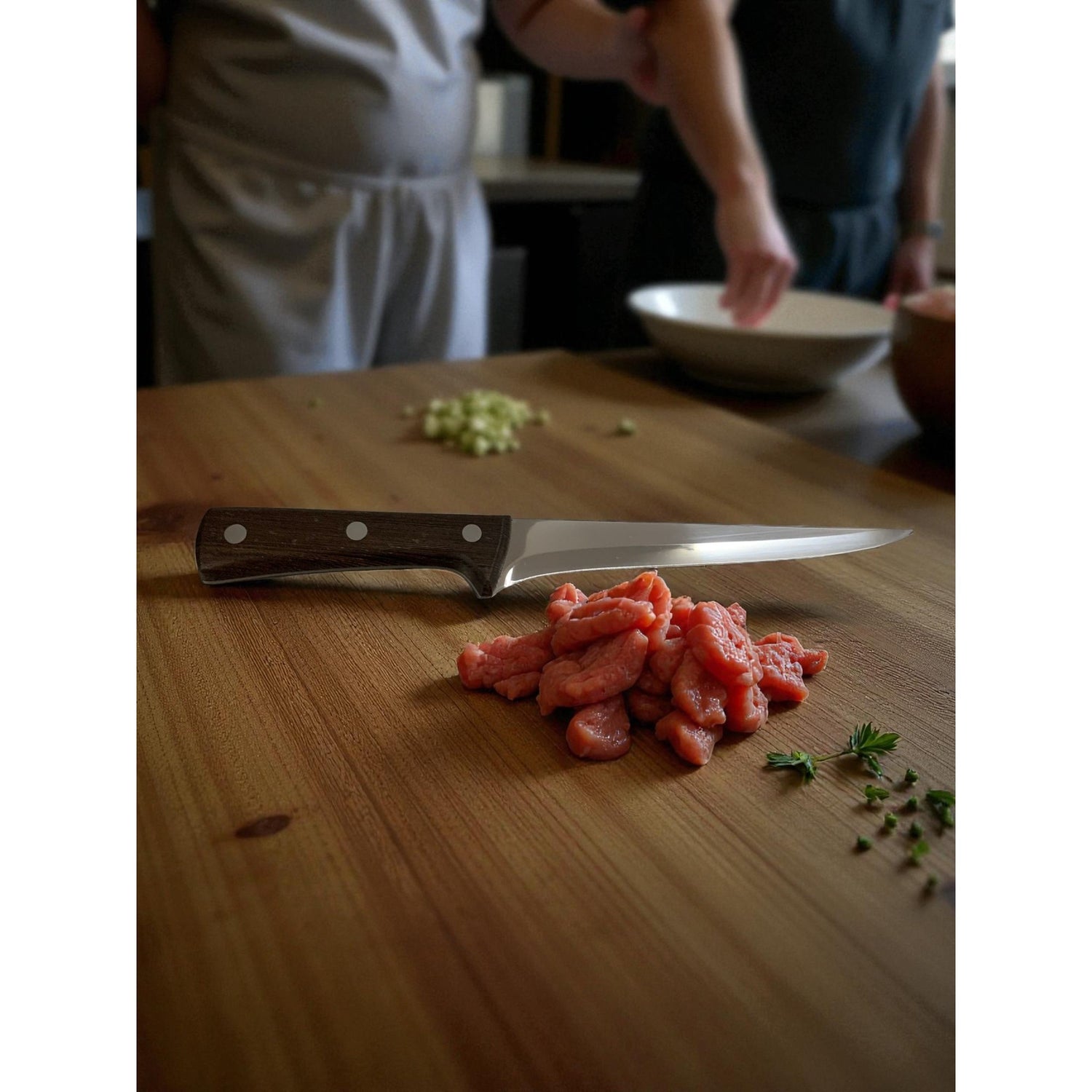 🥩 Ideal pentru: transare carne, taiere oase mici, preparare carne cruda sau fiarta.
