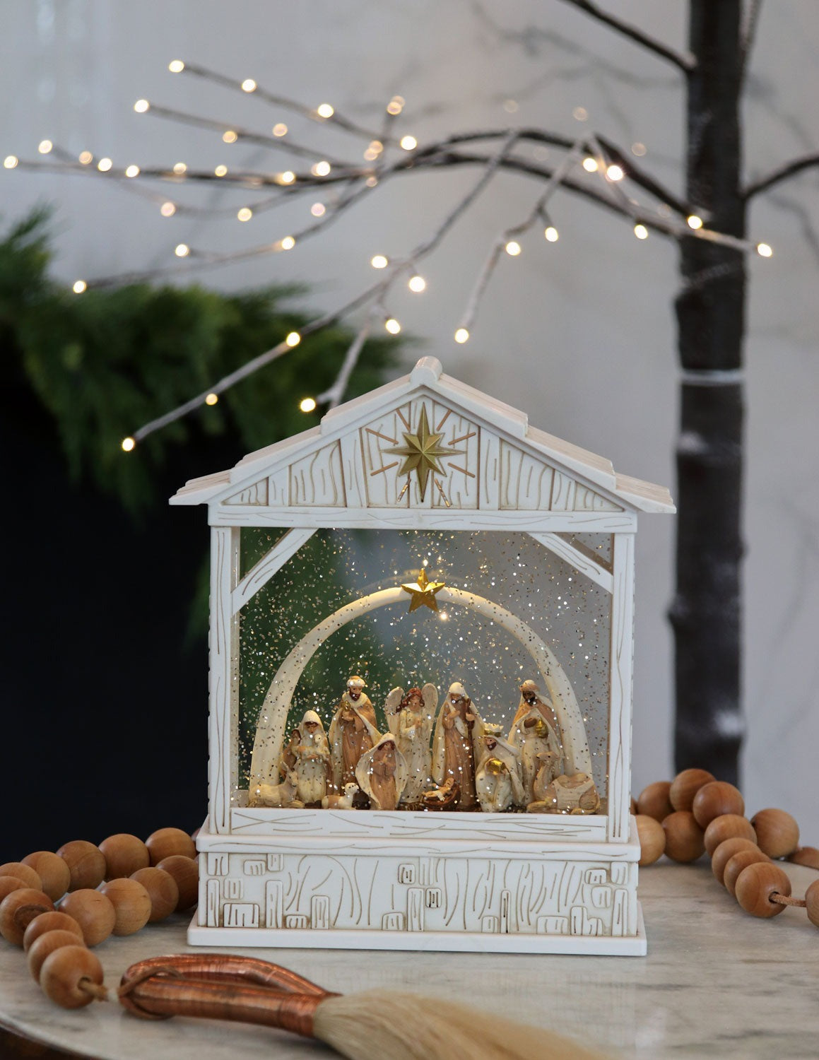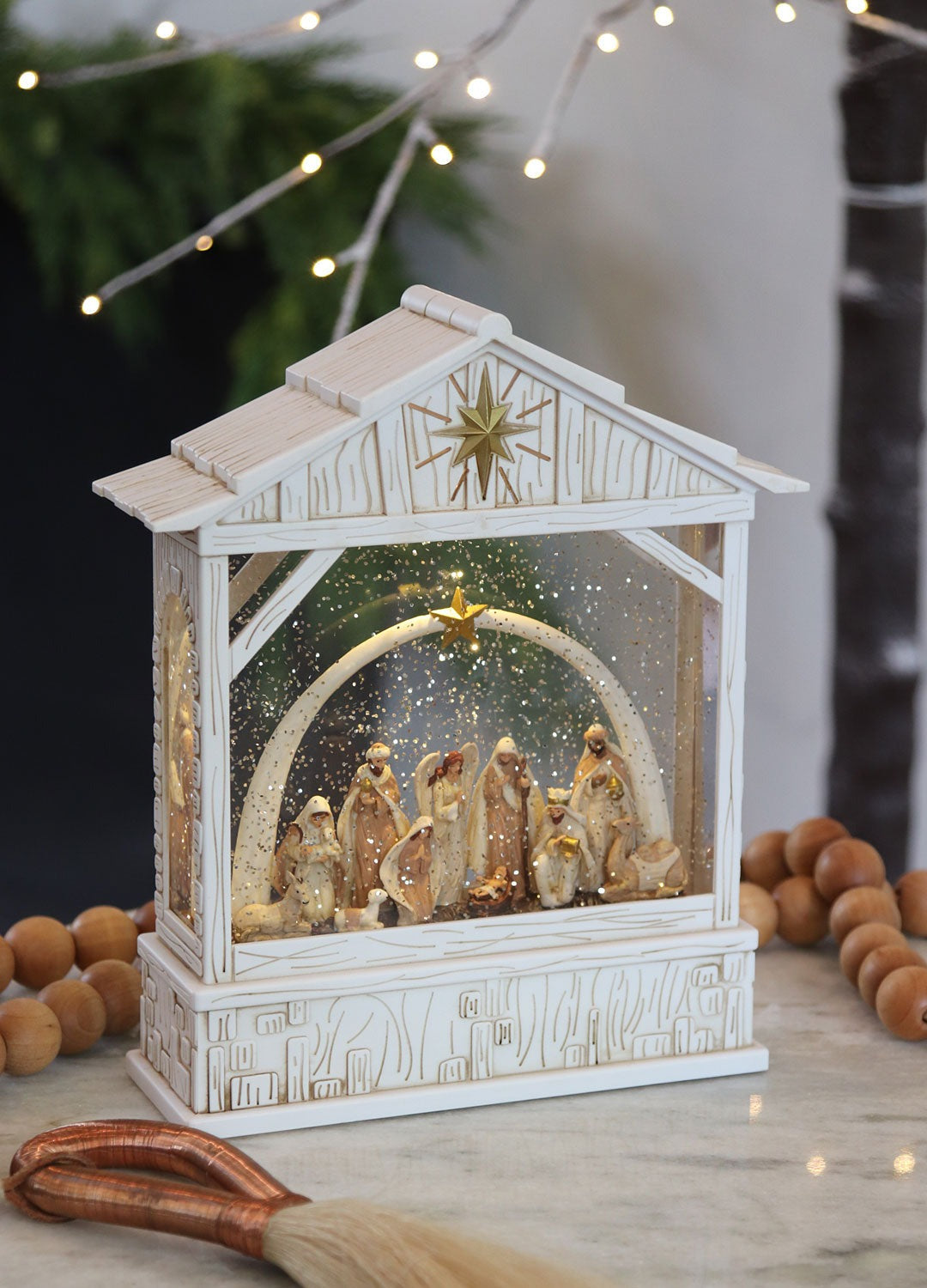 Decoratiune Muzicala - Iesle Nasterea, cu apa si sclipici miscator, 25 cm - Alb urmeaza sa intre in stoc si va fi livrat in cel mai scurt timp.