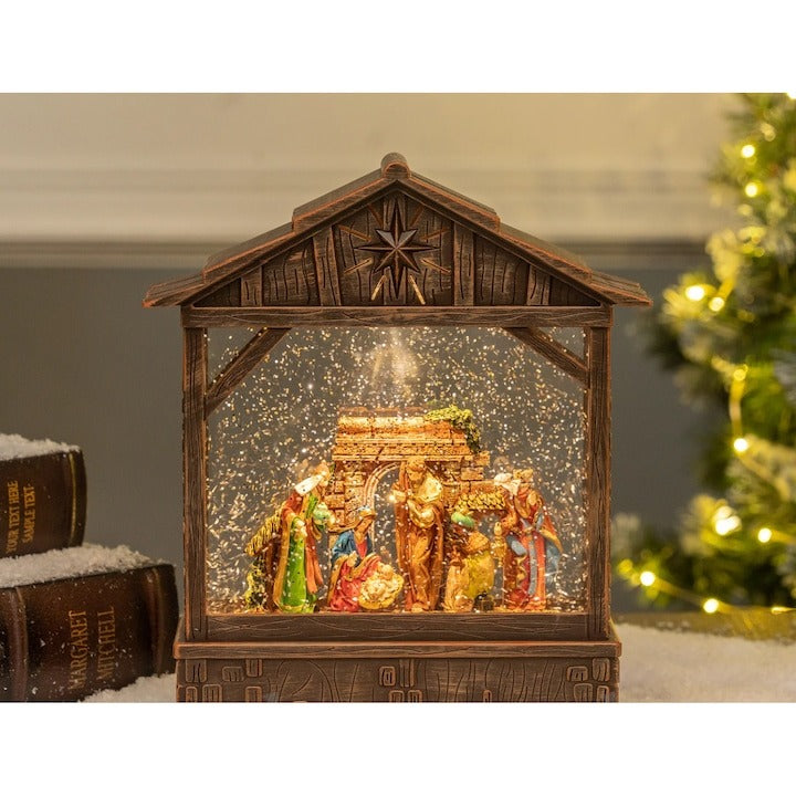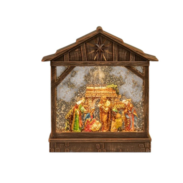 Decoratiune Muzicala - Iesle Nasterea, cu apa si sclipici miscator, 25 cm
