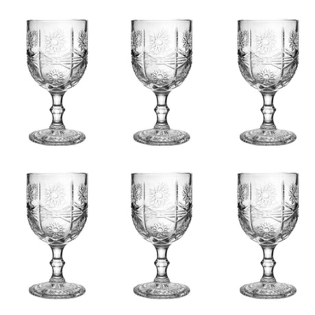 58,50 leiPret per bucata /IndisponibilSet 6 pahare din sticla transparenta, cu model, cu picior, 300 ml