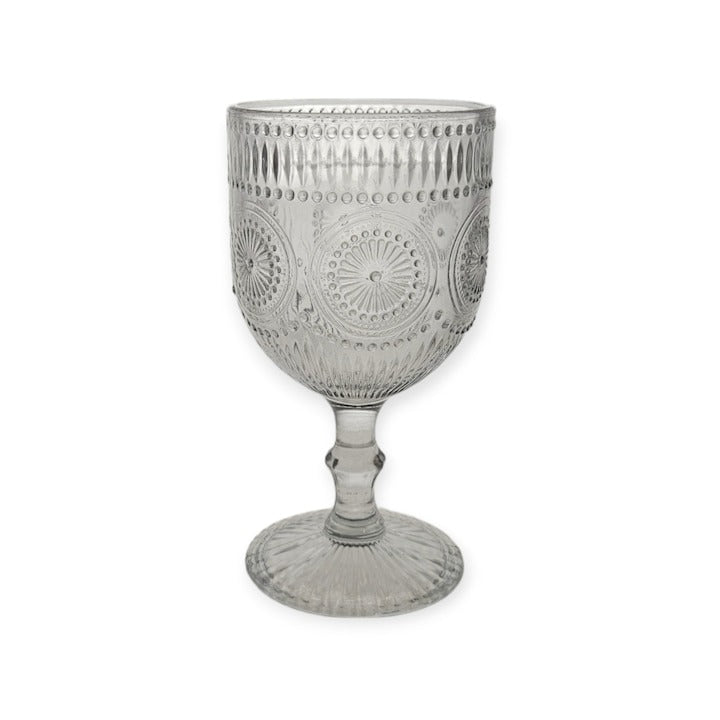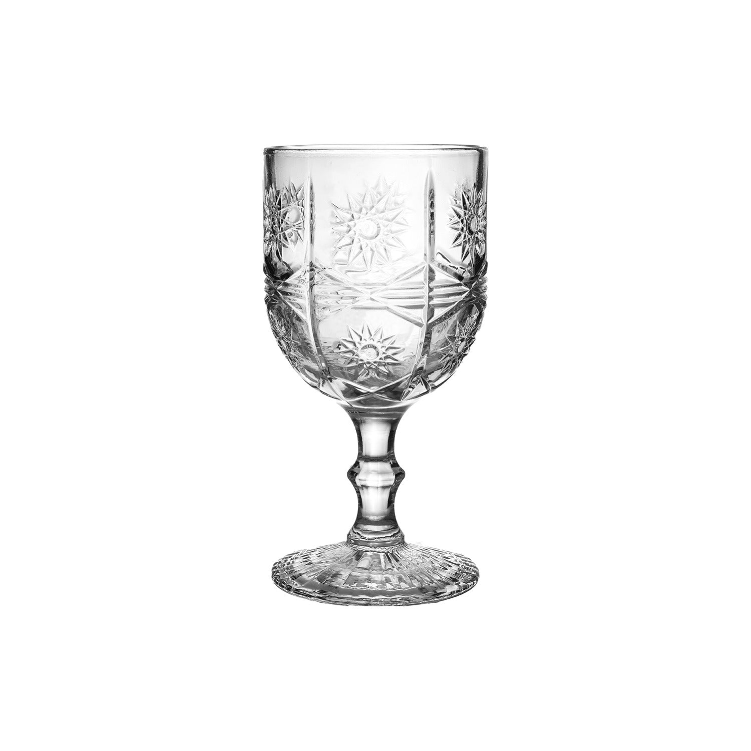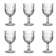 Set 6 pahare din sticla transparenta, cu model, cu picior, 300 ml