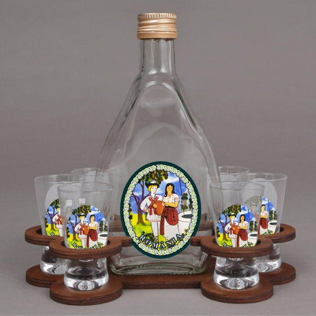 80,10 leiPret per bucata /IndisponibilSet bautura Model Haiduc,500 ml cu 6 pahare 100 ml , Ceramica