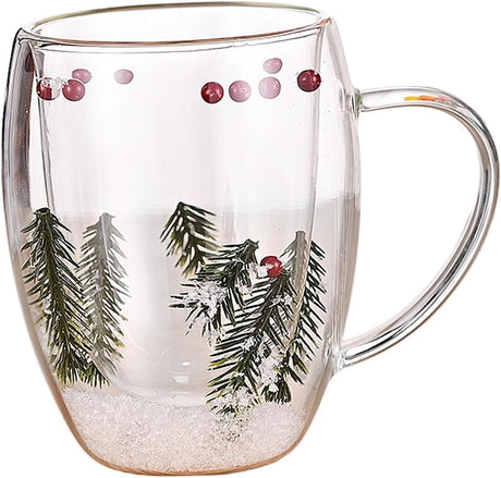 Cana cu pereti dubli , sticla termorezistenta , Model Festiv/Craciun , 350 ml