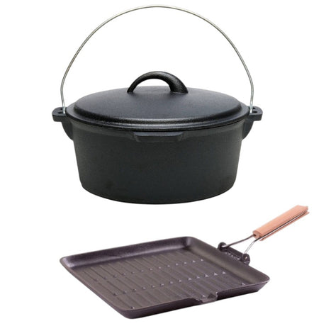 Set 2 produse din fonta pura, Tuci 25 cm, 3.5l, Grill 24 cm