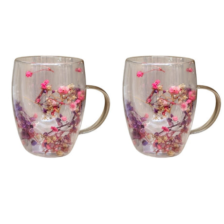 Set 2 Cani cu Pereti Dubli din sticla termorezistenta , Flori Multicolore 350 ml