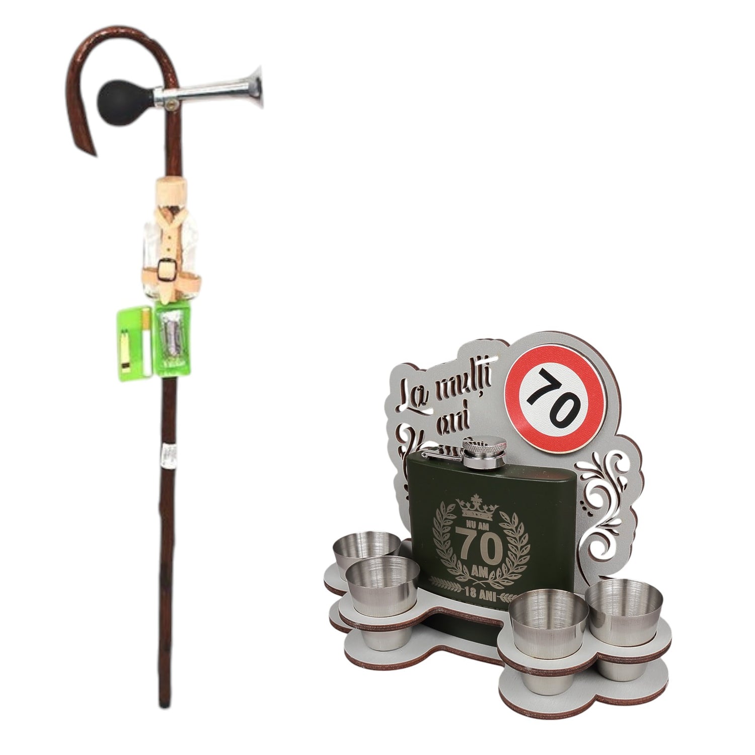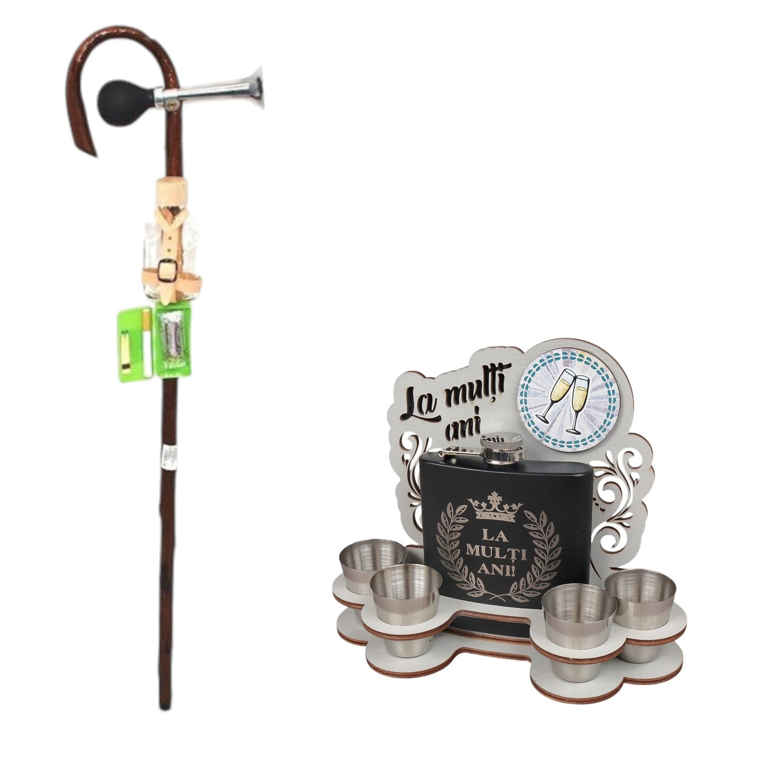Baston Haios, Lemn, Maro Inchis, 92 cm + Plosca Aniversara