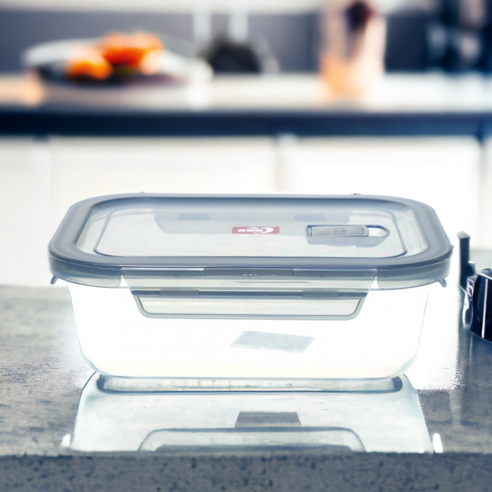 Caserola din Sticla dreptunghiulara cu capac din Plastic, 600 ml, 17x13x6 cm