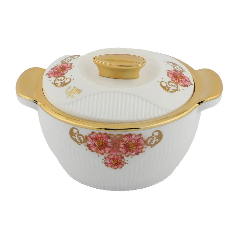 Caserola termoizolanta este fabricata din plastic, avand in interior pereti din inox dublati intre care este aplicat si un strat extra de spuma speciala pentru izolare.