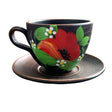 Set Ceasca lut rosu pictata, model floral , 200 ml cu farfurioara