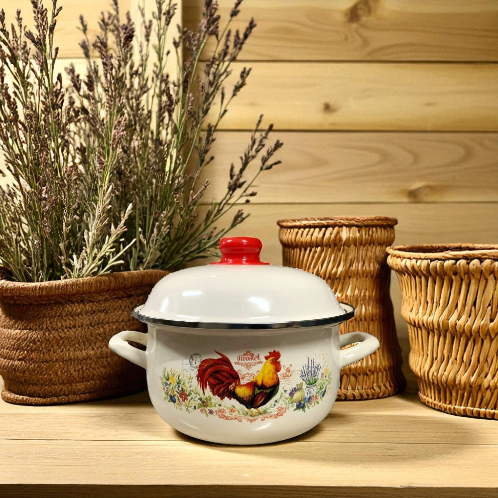 Oala din otel emailat ,cu capac, 3.5 Litri
