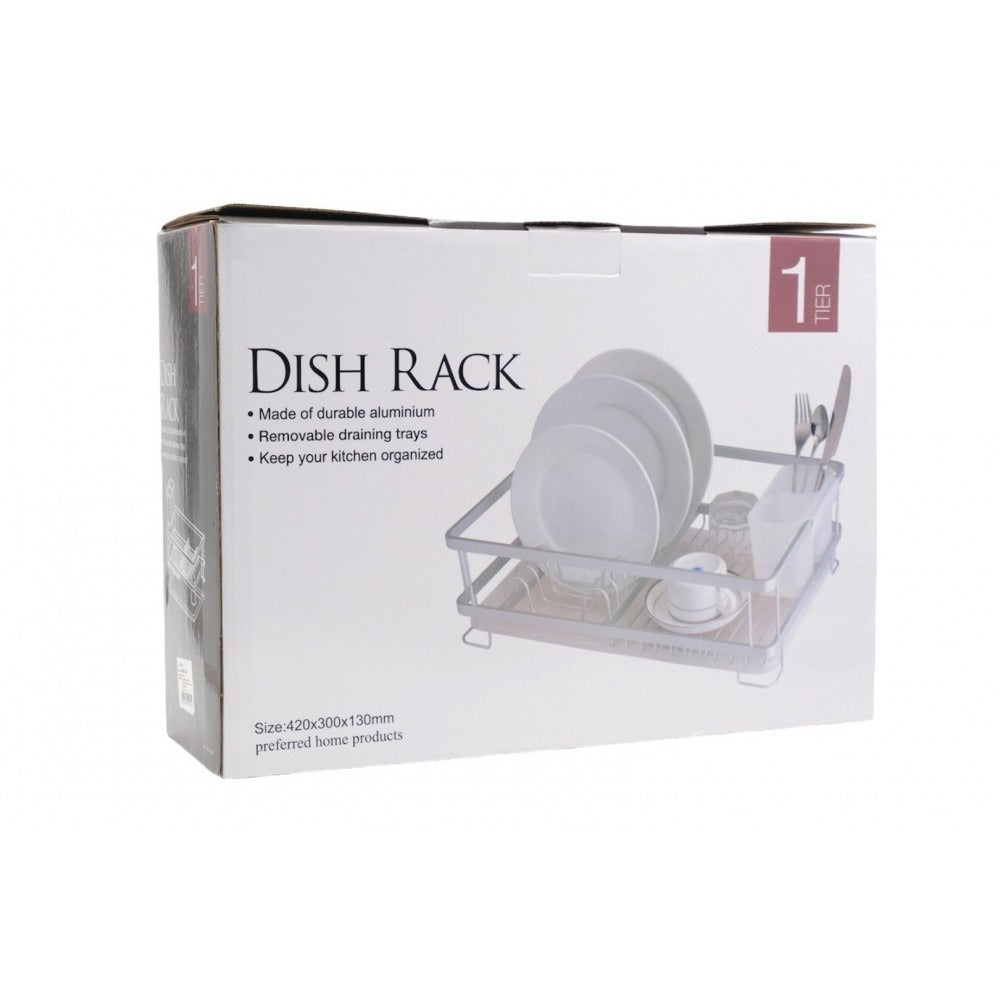 Scurgator din aluminiu pentru vase, Gri, 42x30x13 cm si tava din plastic urmeaza sa intre in stoc si va fi livrat in cel mai scurt timp.