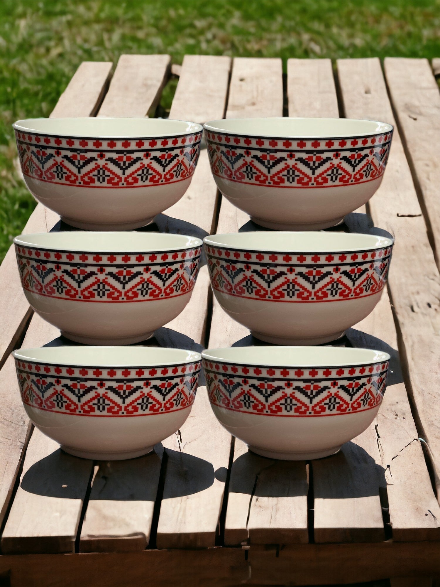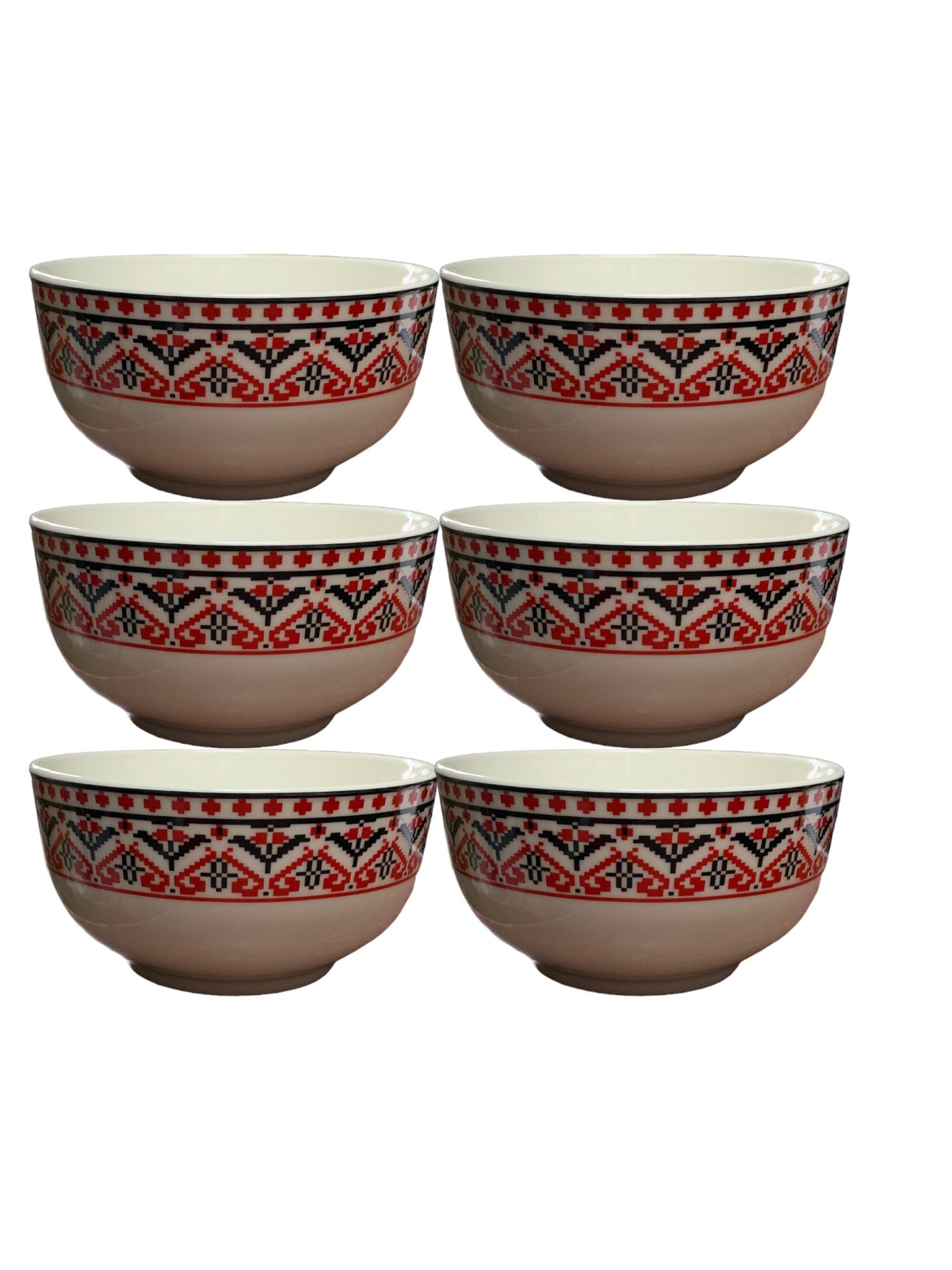Set 6 Boluri din Portelan cu Motiv Traditional, 14 cm