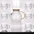 Set 6 Cani cu Infuzor pentru Ceai 300 ml si Ceainic 950 ml , Sticla Termorezistenta