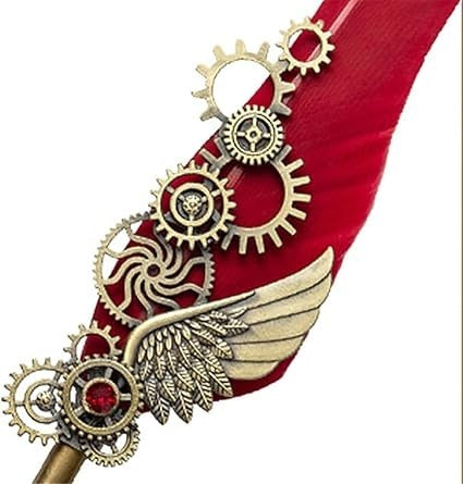Set Stilou Caligrafie cu Pana si Ornamente Metalice, Agenda, Calimara si Suport de Birou