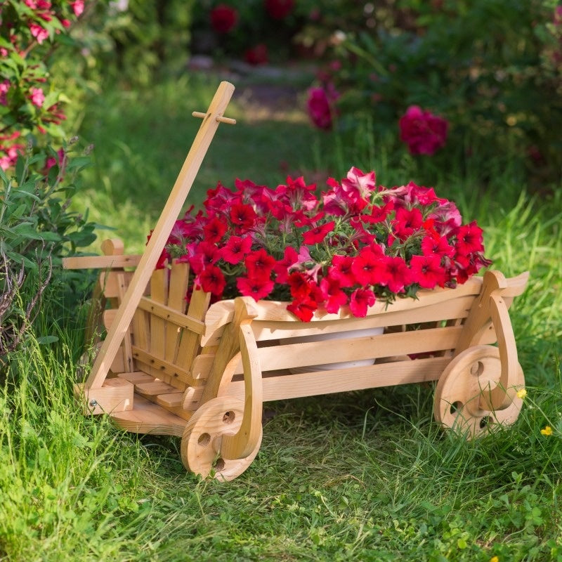 Suport pentru Flori, Caruta, Lemn Maro - Natur , 70x45x27 cm