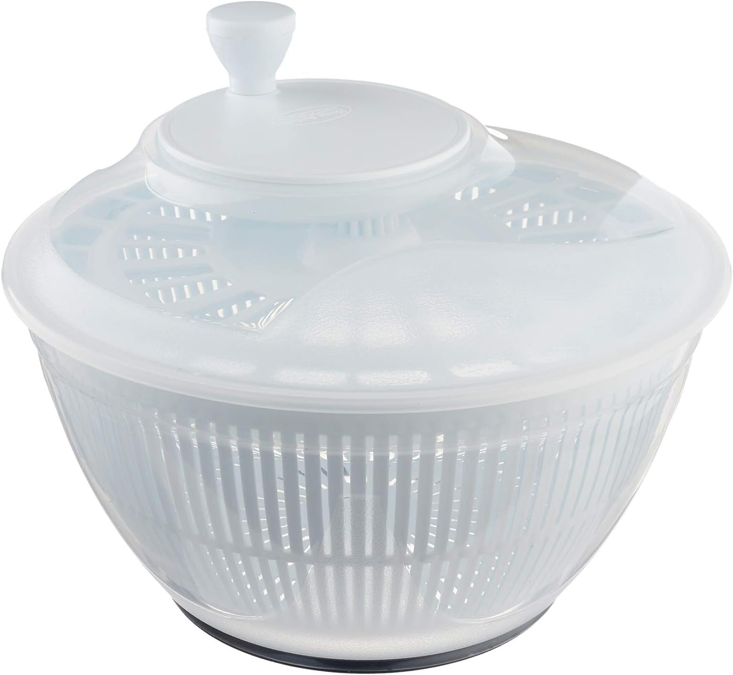 Uscatorul de salata cu sita centrifuga, de 4.75 litri capacitate, este un produs format dintr-un castron si o sita centrifuga existenta in interior, foarte util in bucatarie. Acesta este proiectat sa elimine excesul de apa din salata dupa ce o cureti, permitandu-ti sa obtii o salata crocanta, fara apa. Uscatorul de salata cu sita centrifuga functioneaza in felul urmator: Introduci salata spalata in interior, apoi prin rotirea manetei de deasupra, sita centrifuga indeparteaza apa de pe salata, scurgandu-se in castronul exterior.